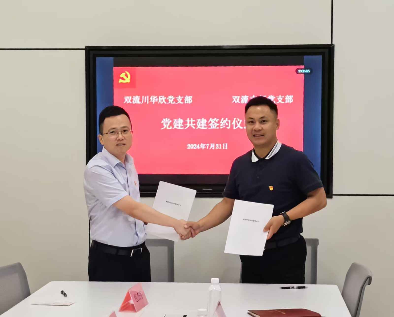 雙流川華欣黨支部副書記周揚(yáng)鑫、四川銀行雙流支行黨支部書記凌胤欽出席簽約儀式并代表雙方簽署“黨建結(jié)對共建活動”協(xié)議書。