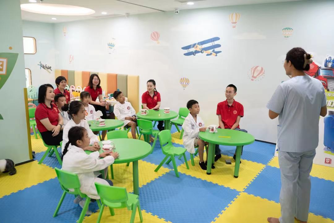 簽約儀式結(jié)束后,汕頭口腔醫(yī)院邀請(qǐng)商會(huì)成員們及其子女參加了“小小牙醫(yī)”親子職業(yè)體驗(yàn)活動(dòng)?;顒?dòng)通過生動(dòng)有趣的口腔健康知識(shí)講解以及問答互動(dòng)等形式,增強(qiáng)家長(zhǎng)及孩子們的口腔保健意識(shí)與能力。