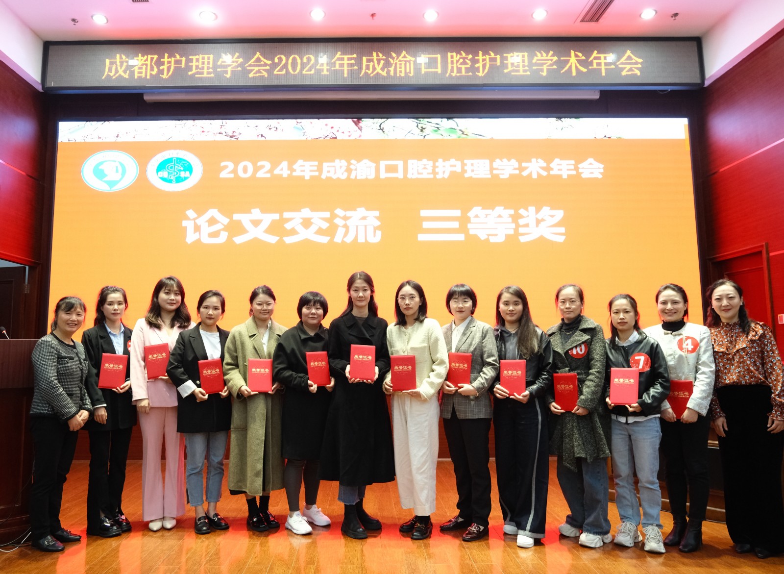本次年會(huì)探討了口腔專科護(hù)理發(fā)展方向、口腔護(hù)理精準(zhǔn)化管理方法及口腔護(hù)理新思路新方法。會(huì)上,四川口腔醫(yī)院種植修復(fù)科護(hù)士長楊蓮?fù)陡宓恼撐摹度袒o(hù)理對(duì)老年口腔種植患者牙周健康的影響》作為大會(huì)發(fā)言形式進(jìn)行參賽。楊蓮?fù)瑏碜运拇ù髮W(xué)華西醫(yī)院、四川大學(xué)華西口腔醫(yī)院、重慶醫(yī)科大學(xué)附屬口腔醫(yī)院等多家知名醫(yī)院的護(hù)理同仁展開了激烈角逐,最終榮獲論文交流比賽“三等獎(jiǎng)”。