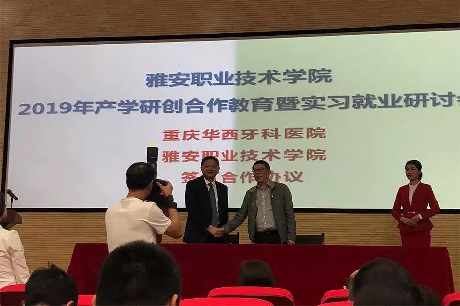 5月9日,雅安職業(yè)技術(shù)學(xué)院2019年產(chǎn)學(xué)研創(chuàng)合作教育暨實(shí)習(xí)就業(yè)工作研討會(huì)舉行。會(huì)上,重慶華西牙科醫(yī)院院長鄭立舸教授與雅安職業(yè)技術(shù)學(xué)院臨床學(xué)院院長薛正毅教授簽訂了共建口腔醫(yī)學(xué)專業(yè)臨床教學(xué)基地合作協(xié)議。