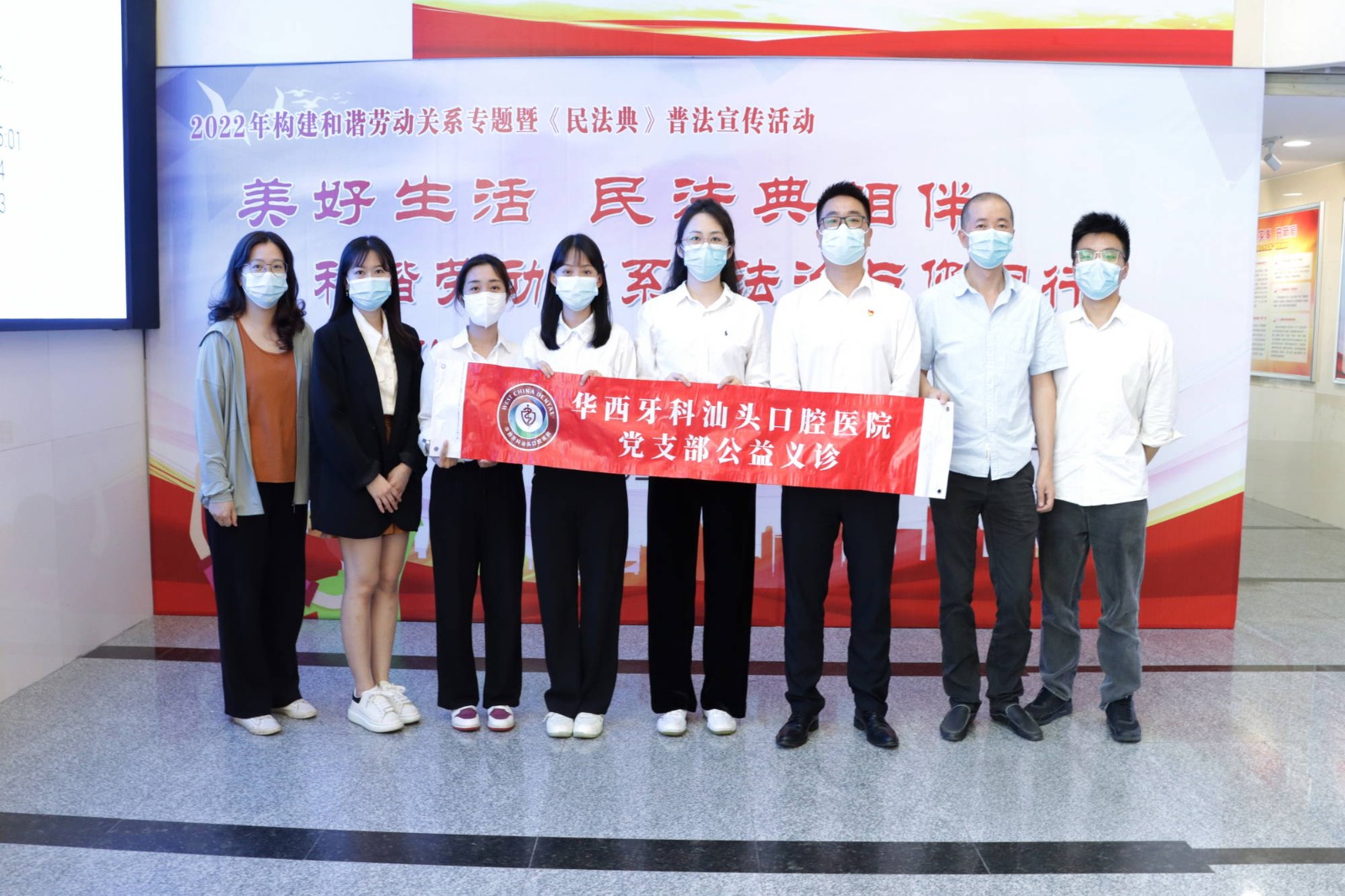 5月19日上午,由汕頭市人力資源和社會保障局、汕頭市政務服務數(shù)據(jù)管理局及汕頭市龍湖區(qū)人民法院聯(lián)合主辦,汕頭口腔醫(yī)院黨支部、汕頭市勞動人事爭議調(diào)解仲裁院及廣東國源嶺東律師事務所協(xié)辦的“2022年構(gòu)建和諧勞動關系專題暨《民法典》普法宣傳活動”在汕頭市政務服務中心舉辦,汕頭口腔醫(yī)院黨支部帶隊到場開展口腔義診活動。