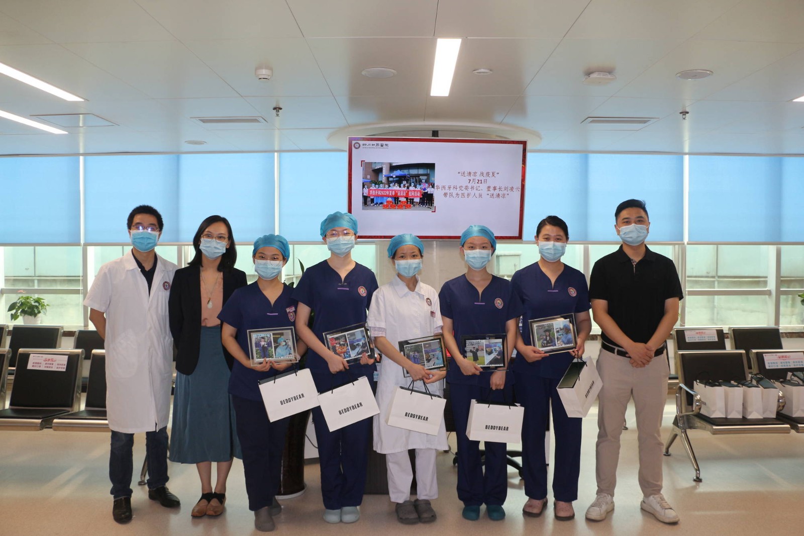 8月19日,在第五個(gè)中國醫(yī)師節(jié)來臨之際,四川口腔醫(yī)院組織開展了慶?!爸袊t(yī)師節(jié)”主題活動。華西牙科總經(jīng)理助理、辦公室主任兼四川口腔醫(yī)院黨總支書記、董事長朱倫倫,華西牙科經(jīng)營管理部部長兼四川口腔醫(yī)院常務(wù)副院長向彩榮、相關(guān)科室醫(yī)務(wù)人員參加本次活動。