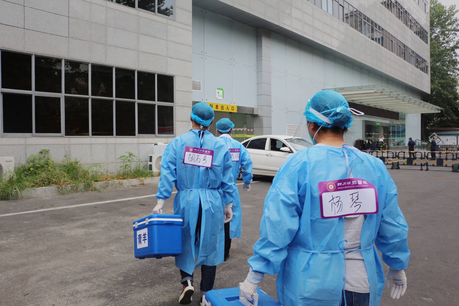 連日來,成都市陸續(xù)開始多輪核酸檢測,每一次大規(guī)模核酸檢測都是一整套精密組織的系統(tǒng)工程,除了在采樣點進行信息登記、采樣的醫(yī)務(wù)人員,還有這樣一群特殊的工作人員,他們身著防護服,手提“送檢專用箱”,步履匆匆穿梭在采樣點與實驗室之間,他們就是核酸樣本轉(zhuǎn)運員。