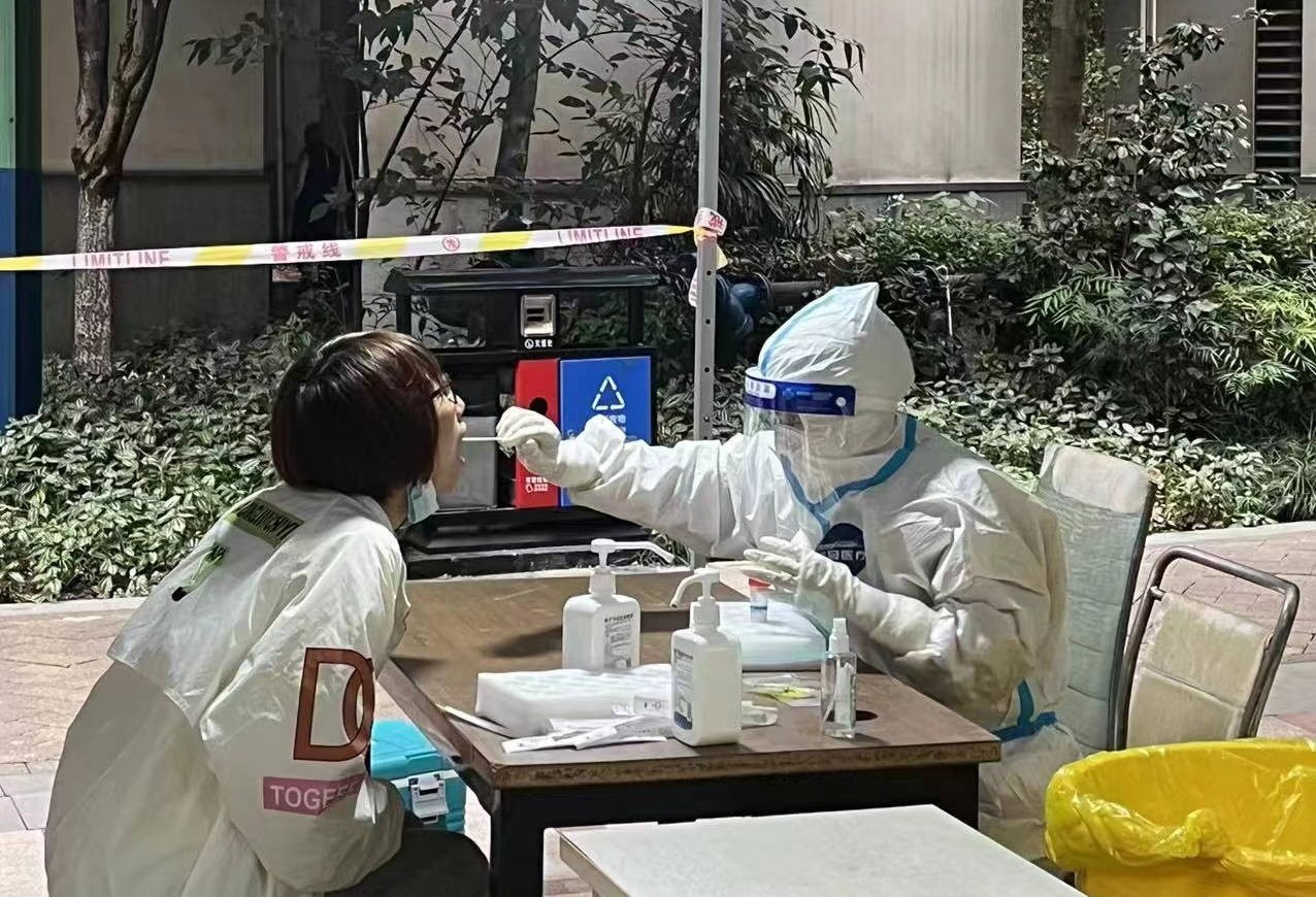 為堅(jiān)決打贏疫情防控阻擊戰(zhàn)、殲滅戰(zhàn),全力保障重慶市民的身體健康,重慶華西牙科醫(yī)院迅速響應(yīng)區(qū)疫情防控工作指揮部號(hào)召,于11月11日晚連夜集結(jié)了一支由15名醫(yī)護(hù)人員組成的核酸篩查支援隊(duì)伍,12日一早,他們便緊急奔赴渝北區(qū)雙鳳橋等區(qū)域的街道核酸采樣點(diǎn)、赴高風(fēng)險(xiǎn)樓棟開展上門核酸采樣,有序組織居民開展核酸篩查。支援隊(duì)伍到達(dá)街道后迅速投入工作,每天從早上7點(diǎn)開始采樣,中午休息片刻后便一直采樣到晚點(diǎn)9點(diǎn)多。由于大多數(shù)采樣點(diǎn)設(shè)在戶外,支援人員穿著薄薄的防護(hù)服,一輪工作下來大家手腳都凍僵了。為了減少居民排隊(duì)等候時(shí)間,支援人員們不敢喝水、不敢多吃,就是為了避免上廁所,爭(zhēng)取早一點(diǎn)出采樣結(jié)果,以便上級(jí)部門根據(jù)數(shù)據(jù)研判下一步防疫措施。連續(xù)奮戰(zhàn)一天后大家看上去都非常的疲憊,摘掉口罩和手套后,臉上和手上更是布滿勒痕,但他們依然咬緊牙關(guān),主動(dòng)申請(qǐng)到“追陽”專班采樣,繼續(xù)奮戰(zhàn)在抗疫最前線,用行動(dòng)詮釋醫(yī)者擔(dān)當(dāng),用汗水踐行醫(yī)者使命,用責(zé)任和堅(jiān)守筑牢疫情防控屏障。