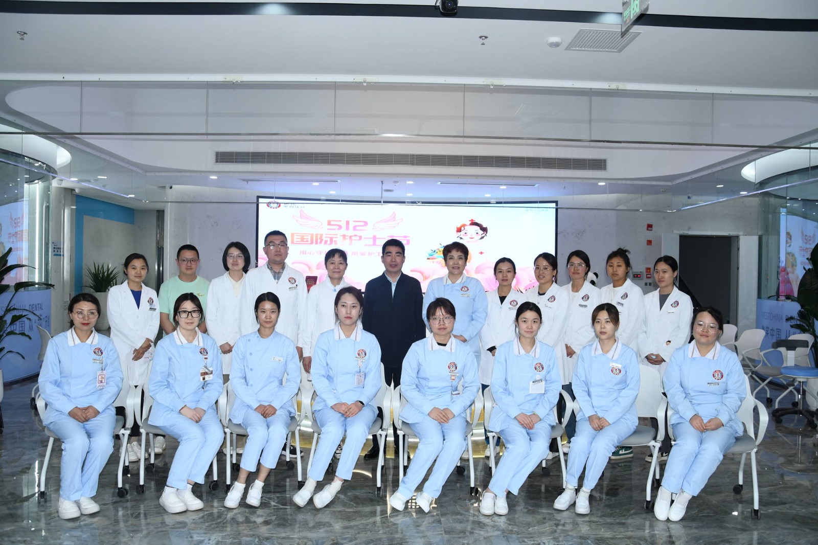 為慶祝第112個(gè)“5.12”國(guó)際護(hù)士節(jié),弘揚(yáng)南丁格爾精神,激勵(lì)全體護(hù)士愛(ài)崗敬業(yè)、積極進(jìn)取、勇于奉獻(xiàn),展示蘭州華西牙科醫(yī)院護(hù)理隊(duì)伍良好的精神風(fēng)貌和職業(yè)風(fēng)范。5月11日,蘭州華西牙科在醫(yī)院一樓大廳舉行了護(hù)士節(jié)慶?;顒?dòng),醫(yī)院全體職工40余人參加。