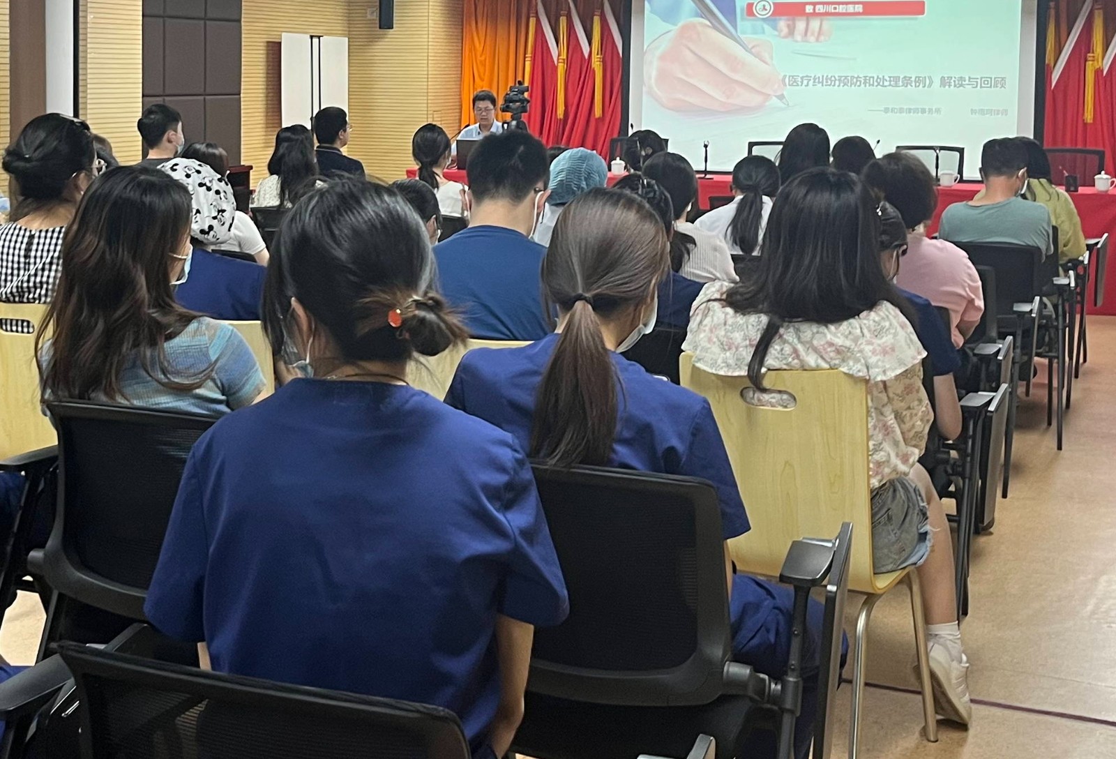 為預(yù)防醫(yī)療糾紛發(fā)生,持續(xù)改善醫(yī)療服務(wù)水平,強(qiáng)化風(fēng)險(xiǎn)意識(shí),保障醫(yī)療安全,6月29日,四川口腔醫(yī)院邀請(qǐng)?zhí)┖吞┞蓭熓聞?wù)所開展了“醫(yī)療糾紛預(yù)防和處理?xiàng)l例”專題培訓(xùn)。醫(yī)院醫(yī)生、護(hù)士等百余名專業(yè)衛(wèi)生技術(shù)人員參加。