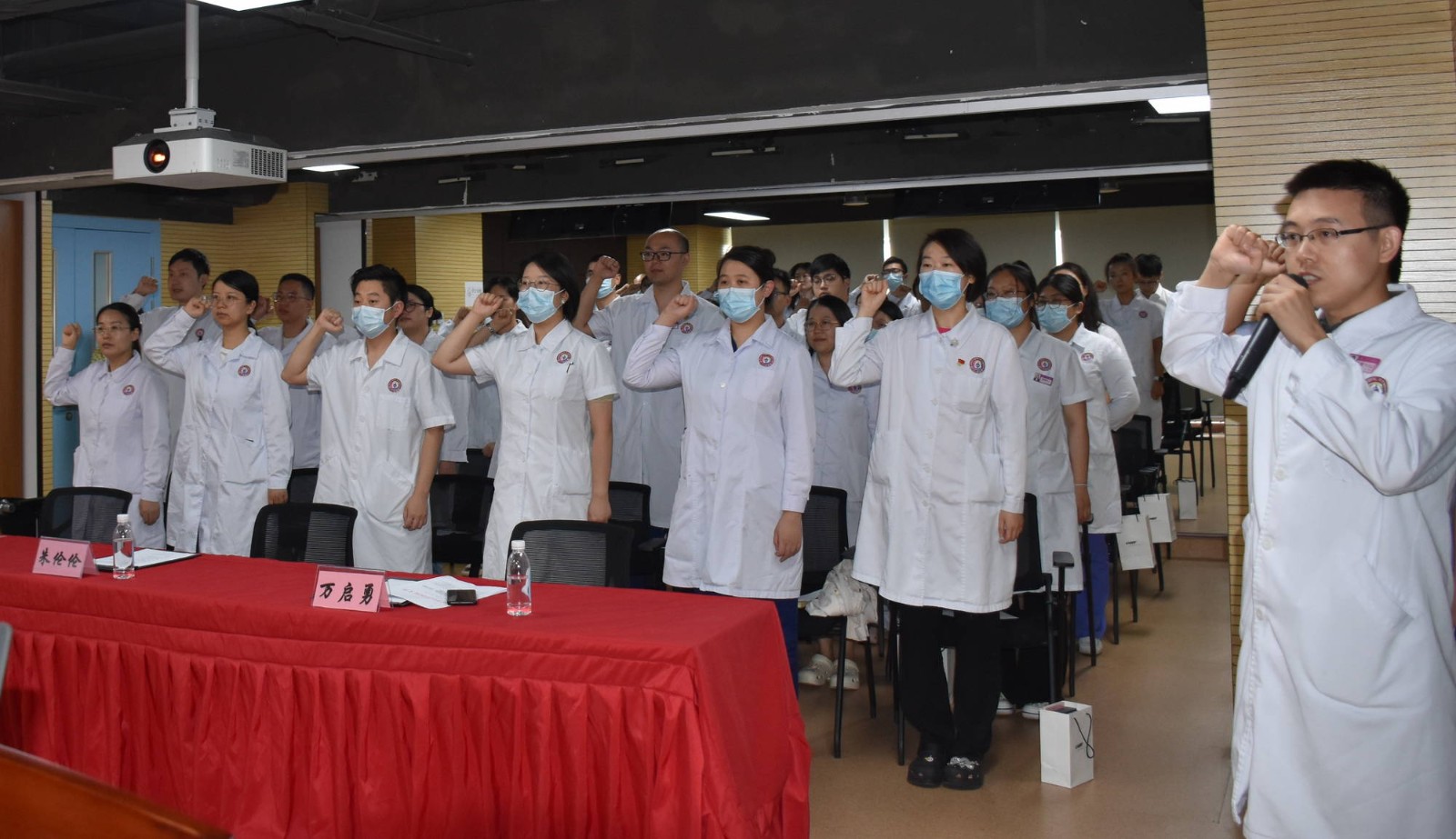 首先,全體人員觀看了《零容忍-不負(fù)十四億》醫(yī)療反腐警示片,警示全體醫(yī)務(wù)人員要牢固樹立廉潔從業(yè)九項(xiàng)準(zhǔn)則的行為底線。隨后,全體醫(yī)務(wù)人員現(xiàn)場(chǎng)進(jìn)行莊嚴(yán)宣誓,再次堅(jiān)定了從醫(yī)初心和健康使命。最后,醫(yī)院對(duì)梁燕、藺難難等34名醫(yī)生給予風(fēng)雨同舟獎(jiǎng)表彰,對(duì)聶晶、蔣禮等10名醫(yī)生給予健康推廣大使獎(jiǎng)表彰,對(duì)何鵬飛、廖利君等8名醫(yī)生給予優(yōu)秀臨床醫(yī)生表彰。朱倫倫、萬啟勇、冉妮分別為獲獎(jiǎng)醫(yī)生頒發(fā)獎(jiǎng)牌及證書。