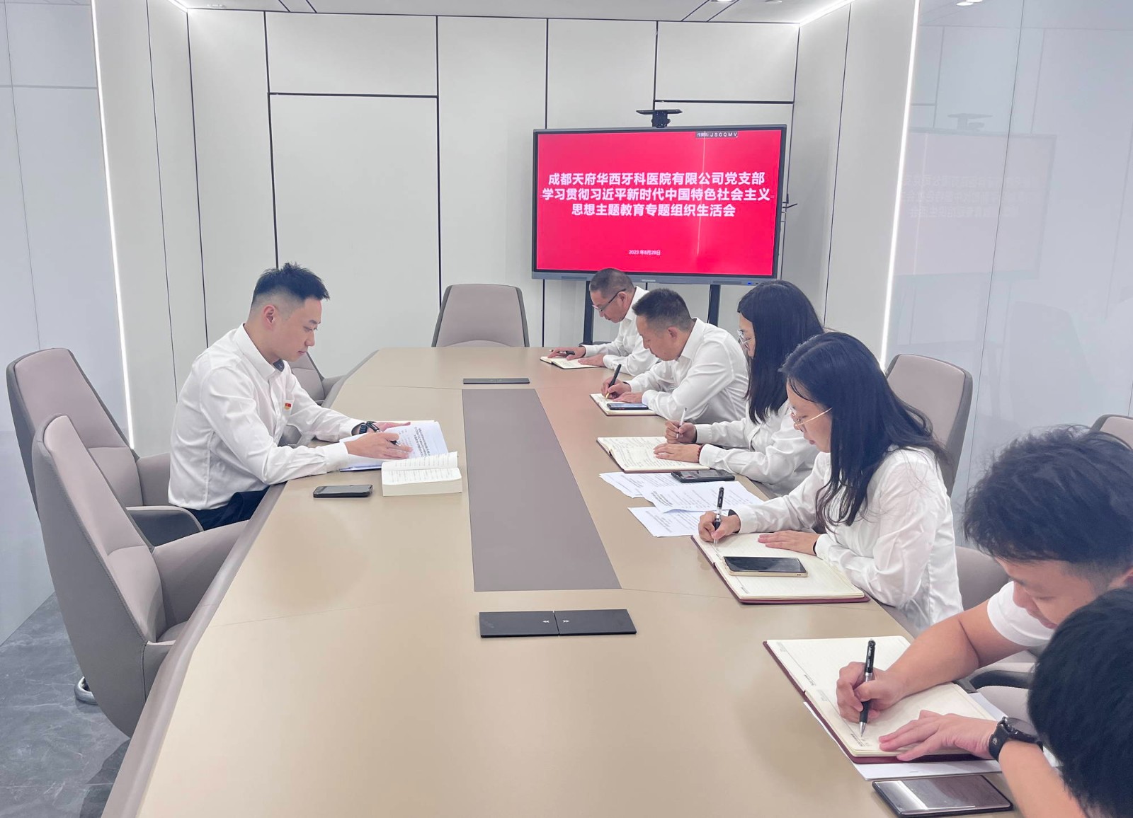按照華西牙科黨委統(tǒng)一部署要求,8月31日下午,天府華西牙科黨支部召開了學(xué)習(xí)貫徹習(xí)近平新時代中國特色社會主義思想主題教育專題組織生活會。會議由天府華西牙科黨支部書記、執(zhí)行董事、總經(jīng)理蘭吉主持,全體黨員參加會議,入黨積極分子列席旁聽本次會議。