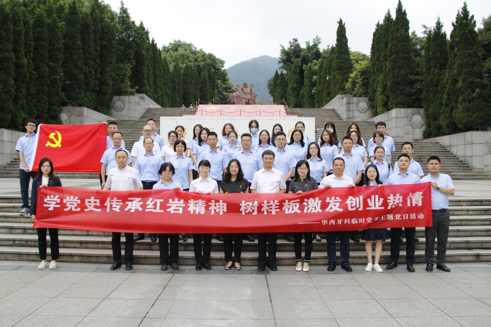 華西牙科參加活動人員與股東方代表、重慶華西牙科醫(yī)院負責人先后參觀了白公館、紅巖魂陳列館,大家認真聆聽每張圖片、每件實物背后的歷史故事,深刻理解了革命先烈們不折不撓、寧死不屈的“紅巖精神”。在歌樂山烈士陵園,全體黨員同志開展了“重溫入黨誓詞”活動。